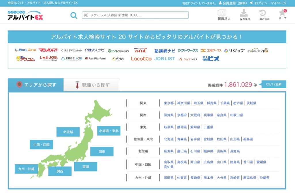 【アルバイトEX】は、大手の求人メディア20社(バイトル・はたらこねっと・マッハバイト、しゅふJOB、シフトワークスなど)と提携しており、複数の求人サイトに掲載されてるお仕事を一括検索・比較・応募でき求人サイトです。
