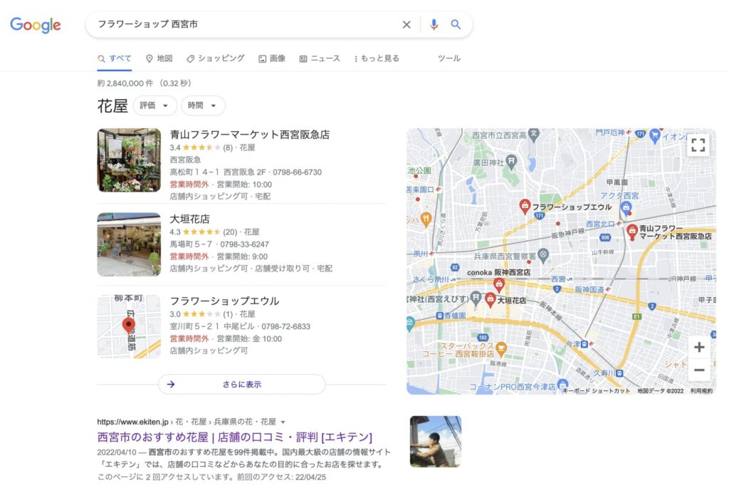 これらの好条件が揃っていたとしても、Webで検索した際に、自分のお店が表示されなければ意味がありませんし、表示されたとしても、3位以内に表示されなければ、お店の存在を知っていただくことはできません。